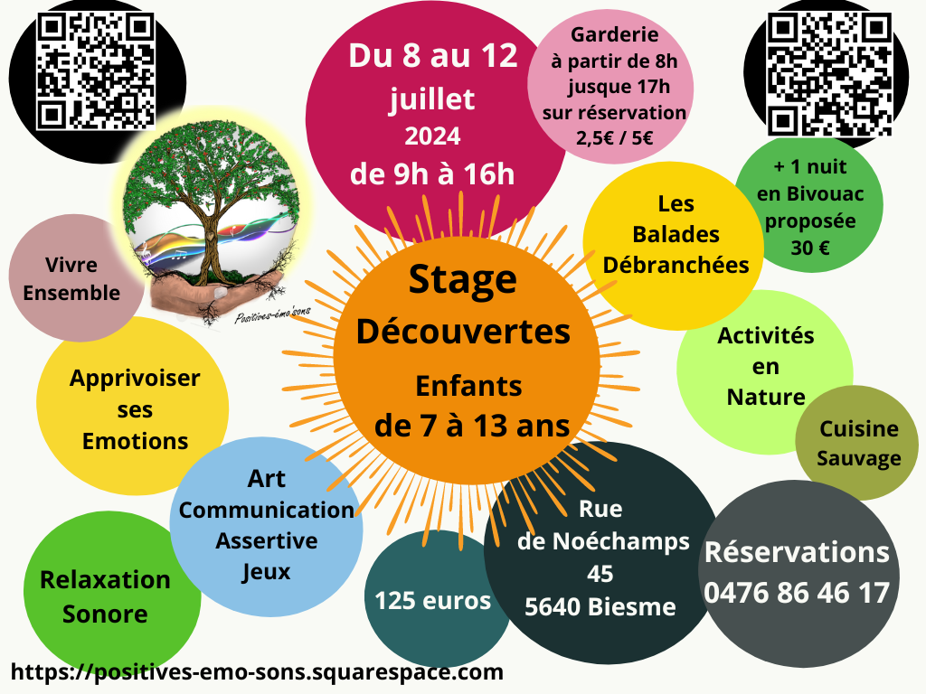 Nous aborderons plusieurs thèmes. Nous adapterons nos activités en fonction de la dynamique du groupe et des besoins individuels.